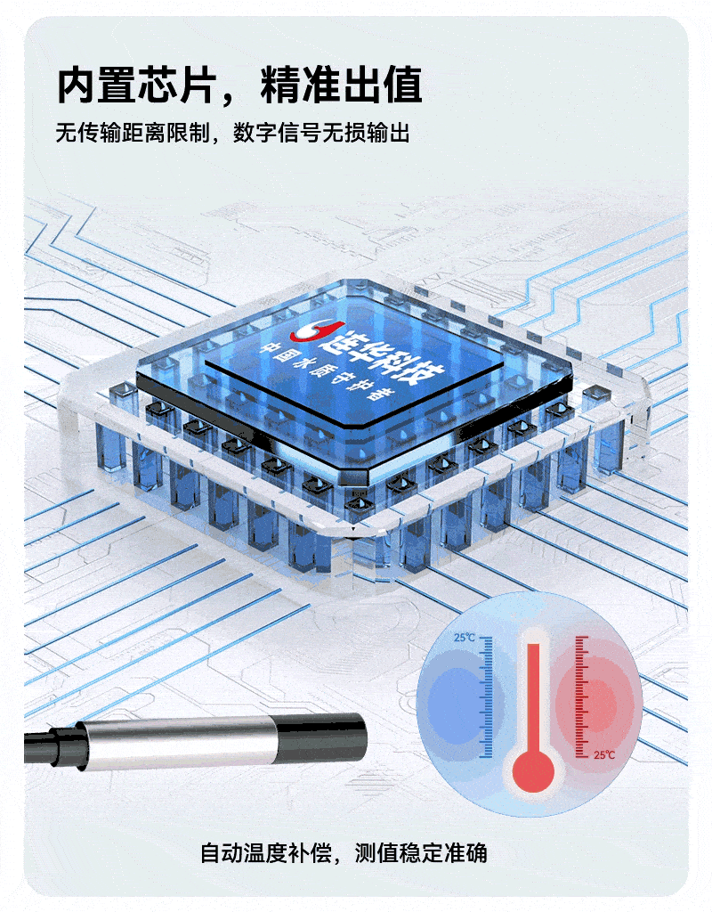 2、采用數(shù)字電極技術(shù),突破傳輸距離限制,默認(rèn)5米線長(zhǎng)(支持定制),結(jié)合自動(dòng)溫度補(bǔ)償功能,確保戶外檢測(cè)信號(hào)穩(wěn)定、測(cè)量精準(zhǔn);
