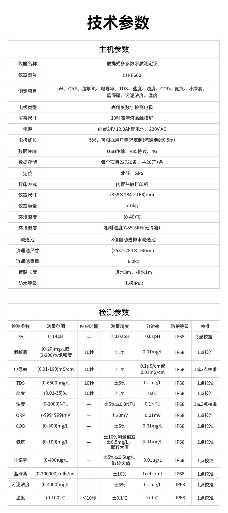 便攜式多參數(shù)水質(zhì)測(cè)定儀LH-E600技術(shù)參數(shù)